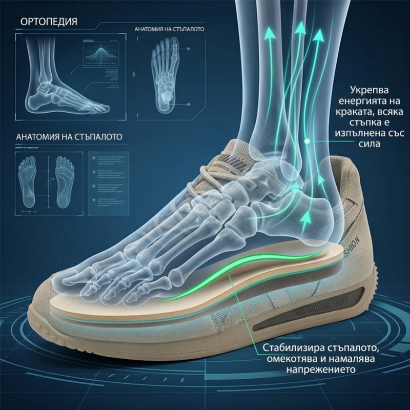 Обувките Pancalls са изключително удобни благодарение на биомеханичния си дизайн, абсорбцията на ударите, разпределението на налягането и дишащите материали. Подметката от мемори пяна с висока плътност ефективно предотвратява умората на краката, като разпределя налягането равномерно. Технологията на подметката EVA абсорбира ударите по време на ходене, намалявайки натоварването върху ставите. Гъвкавата структура на пръстите позволява свобода на движение и предотвратява деформации. Опората на свода помага за облекчаване на плоскостъпие или висок свод. Леката и дишаща конструкция поддържа краката ви сухи и удобни, осигурявайки комфорт през целия ден.