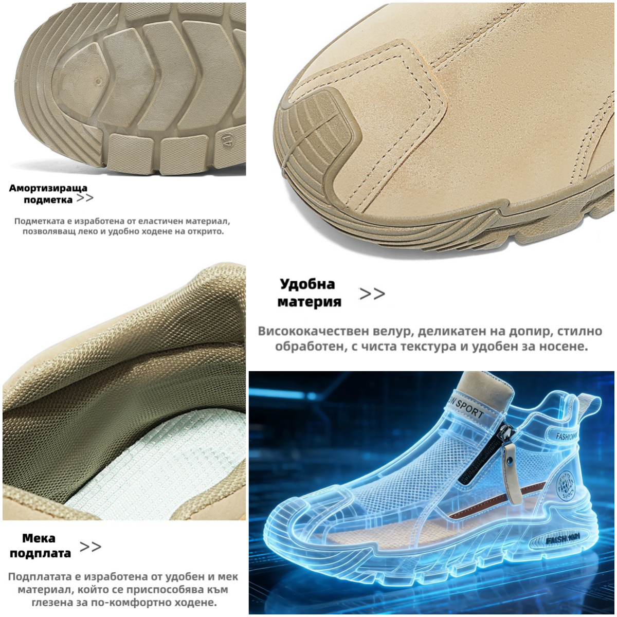 Определено ще се почувствате по-добре. Има защитна подметка, която прави всяка стъпка удобна, но краката ви никога няма да изпитват дискомфорт или болка.