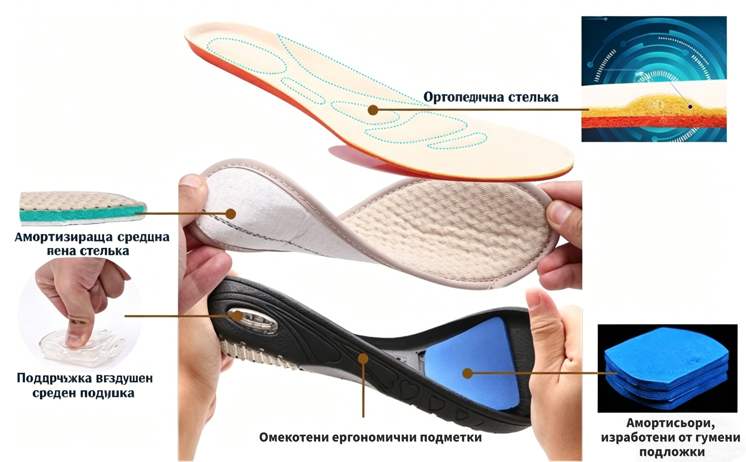 Абсолютно! Ергономичният дизайн осигурява отлична опора и омекотяване, облекчавайки болката и дискомфорта в краката.